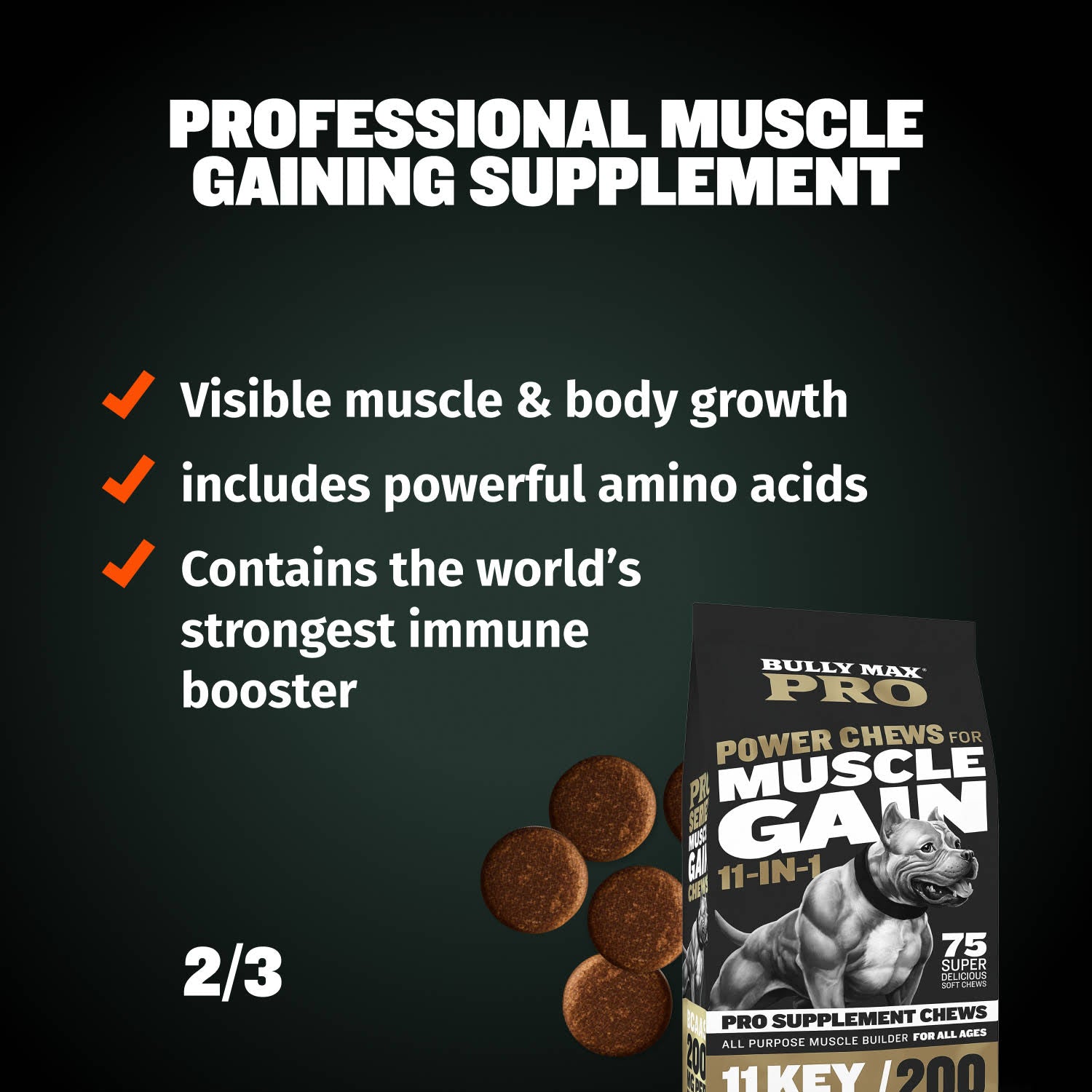 | Bully Max Pro Series Power Chews for Muscle Gain Active Ingredients per 1 chew (4g) | |