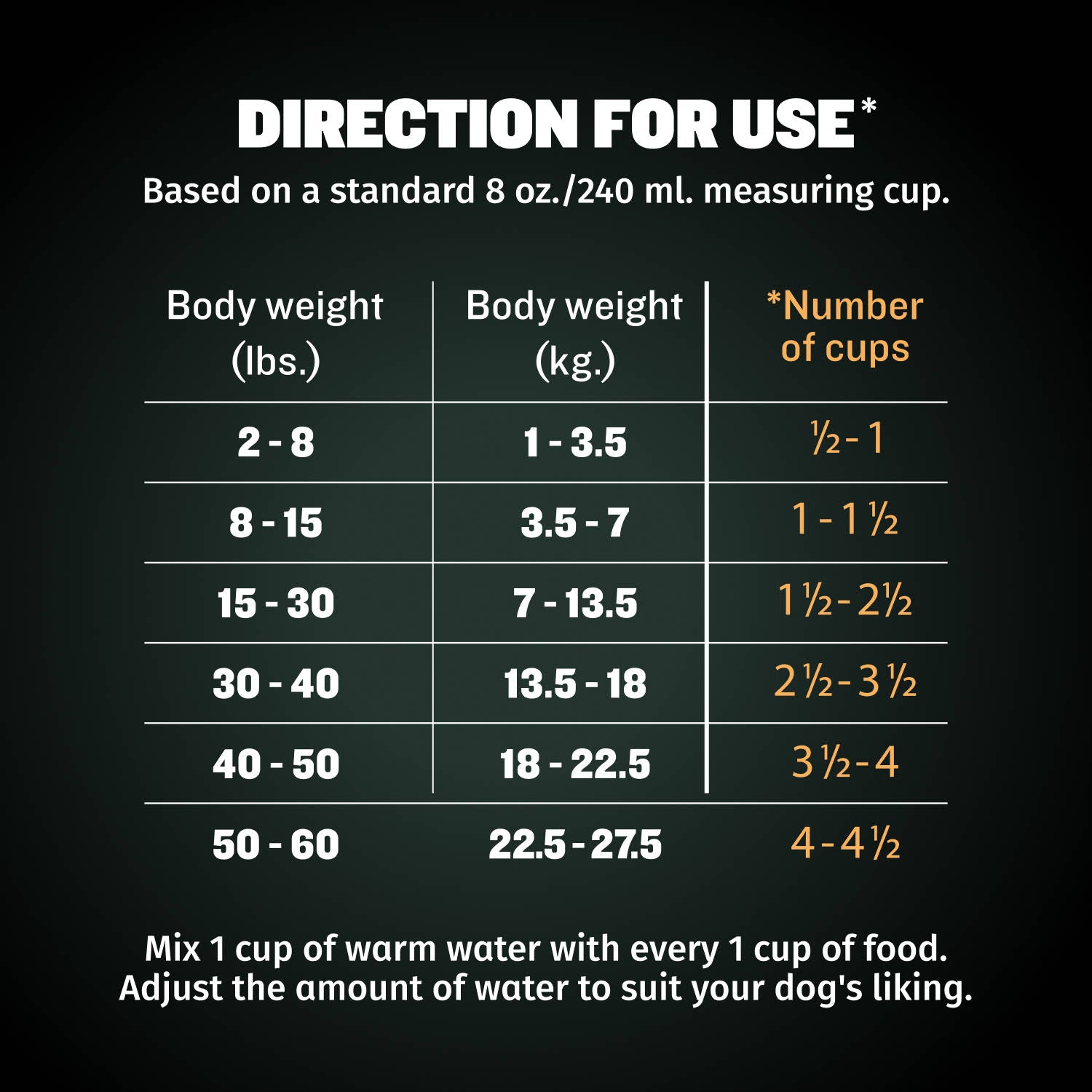 | Dog’s Weight (Lbs) | Amount (Cups) |
