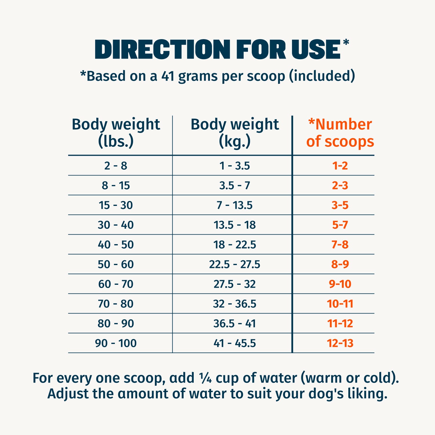 | Dog’s Weight (Lbs) | Amount (Scoops) |