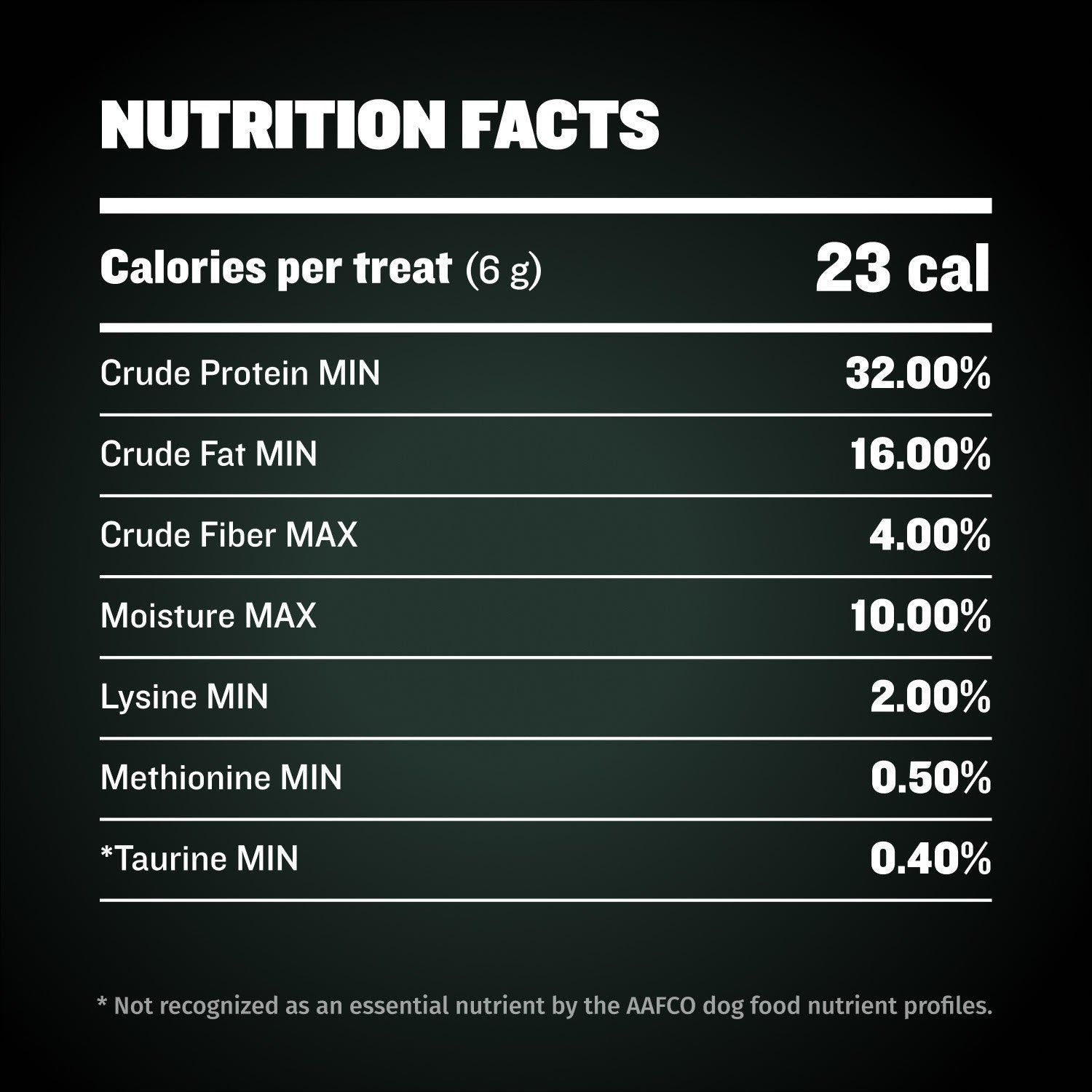 We’ve also made sure to formulate these treats using healthy, natural fats to provide a consistent source of slow-burning, long-lasting energy that will help power your dog through workouts, long walks, or just a game of fetch in the yard.