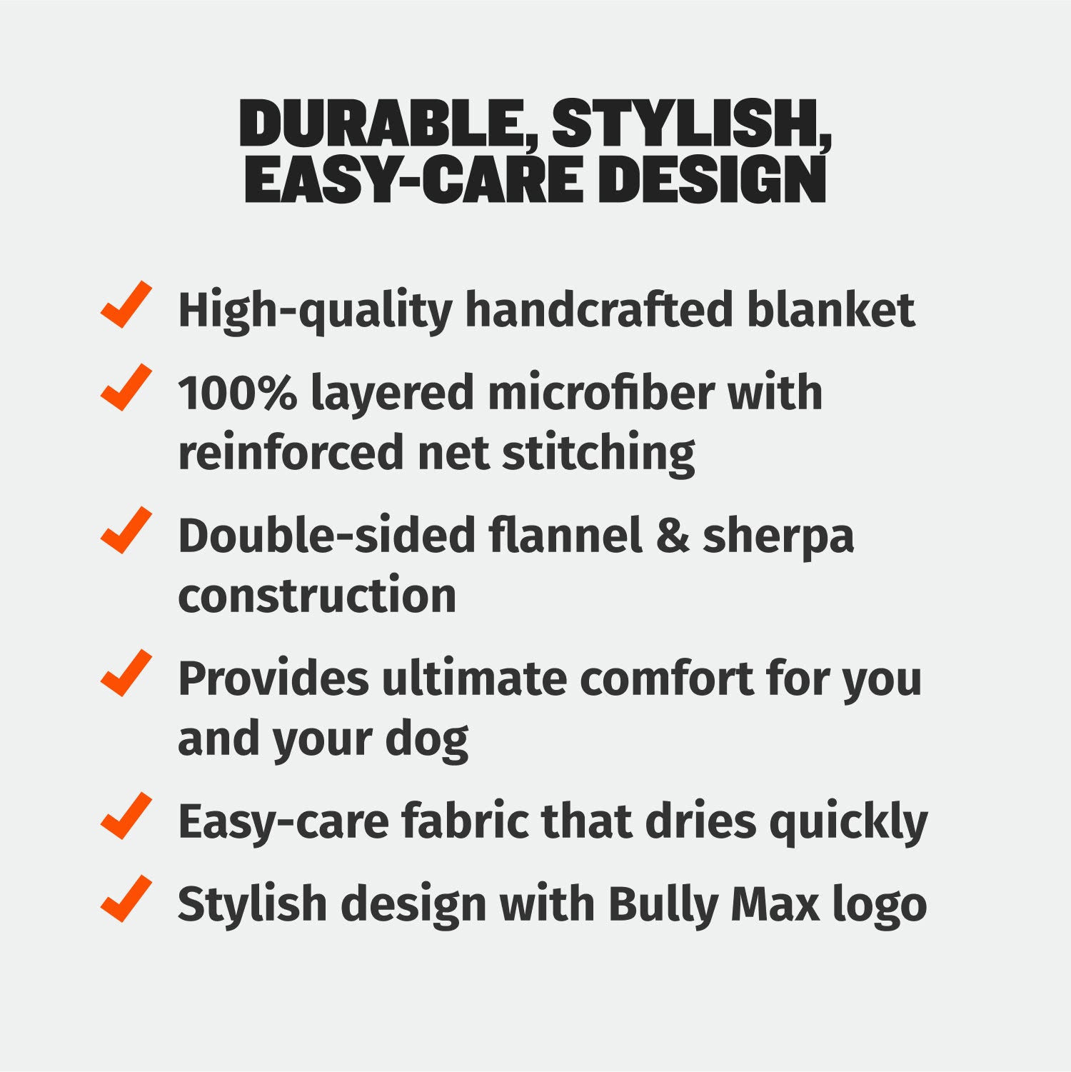 No matter what we make here at Bully Max, we like it to be tough and durable. And this blanket is no exception! The seams are reinforced to keep the layered microfiber material in great condition for years to come.
