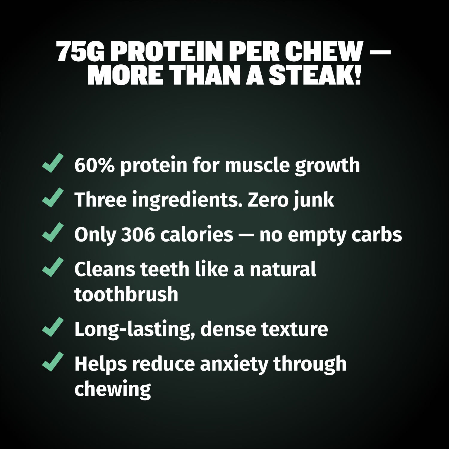 With a whopping 75 grams of protein, it's a snack and a nutritious addition to your pet's diet. Protein is essential for your pet's overall health, contributing to strong muscles, a healthy coat, and overall vitality. Not only that, but Bully Max® High Protein Power Chew will provide long-lasting chewing enjoyment to keep your pet busy while also cleaning their teeth. When the treat gets too small to chew, pop it in the microwave, and it becomes a delicious, puffy treat they can finish. Bully Max® High Protein Power Chew is a fantastic option for a high-quality, delicious, and nutritious treat!