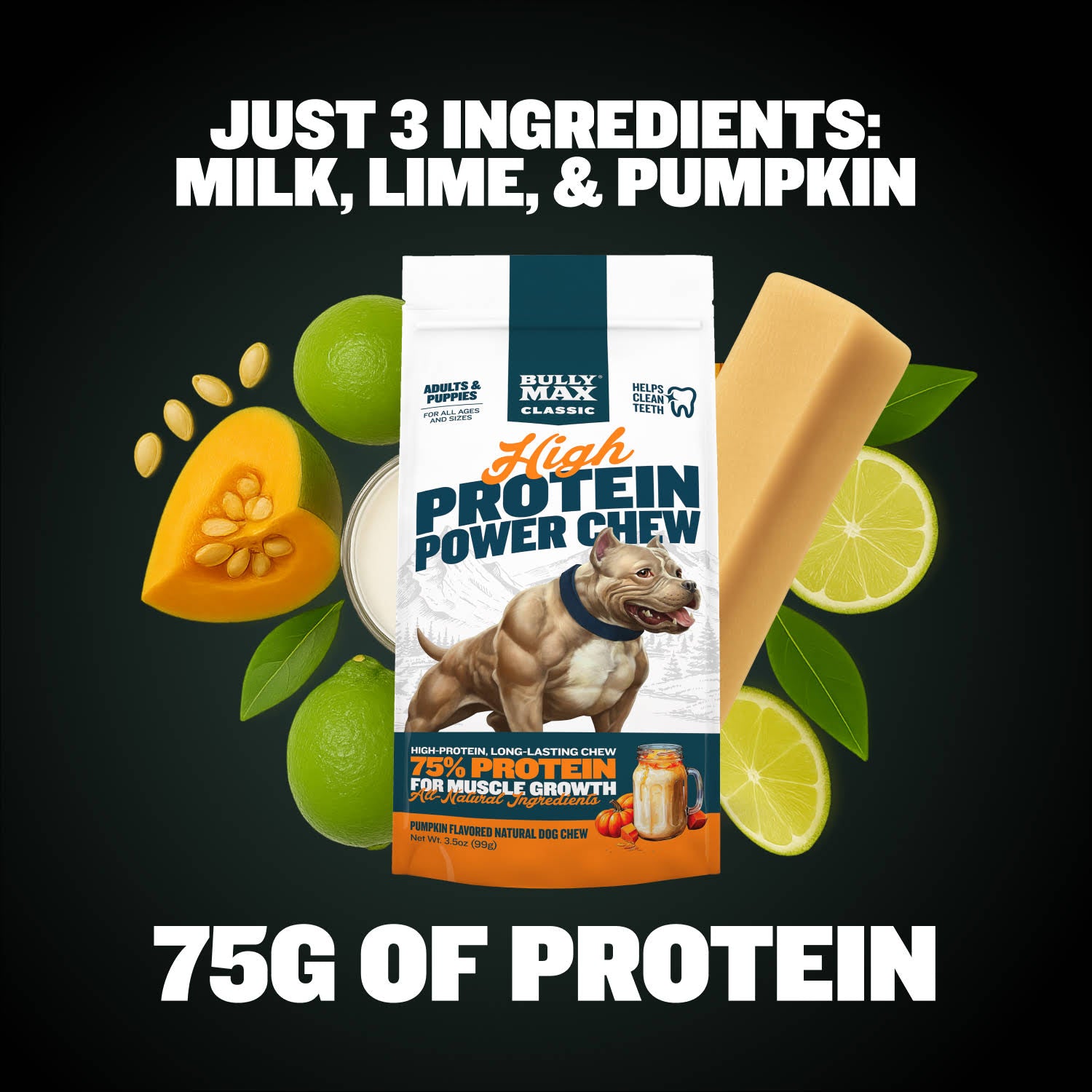 Built for champions. Powered by pumpkin. This limited-run seasonal drop delivers the same long-lasting, high-protein chew dogs love — now with the added digestive support of real pumpkin. Once this batch is gone, it’s gone!