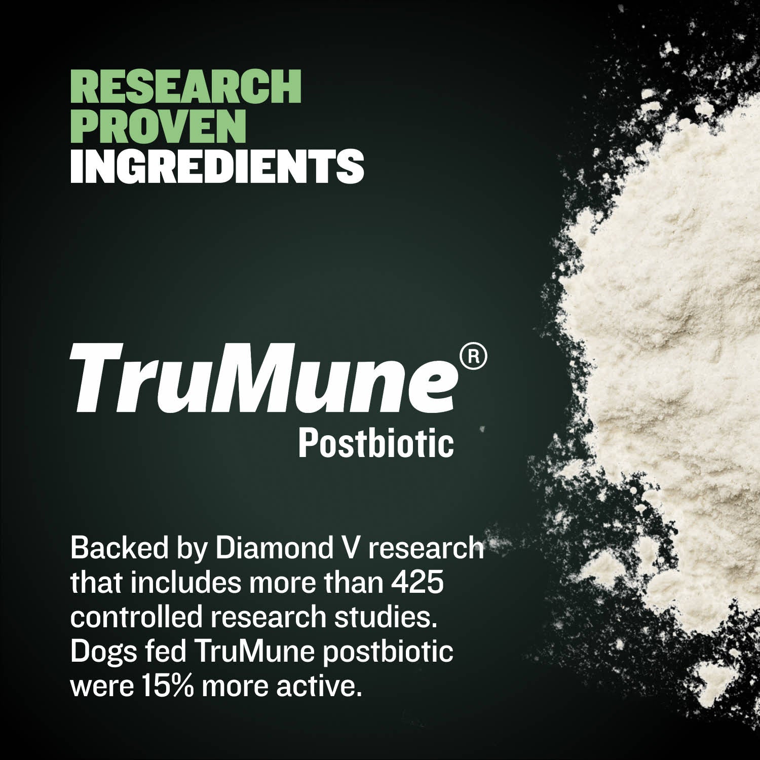 This premium formula is packed with healthy protein from real lamb and pork, is fortified with essential vitamins and minerals, and contains TruMune®, a powerful postbiotic proven to boost your dog’s gut health and immune function. In short, it contains everything your puppy needs to grow up healthy and happy—while also providing them with a delicious meaty meal that will have their tail wagging every day at dinner time. This powerful ingredient is backed by more than 425 controlled research studies and 120 peer-reviewed publications, with results ranging from improved digestive health and immune function to increased vitality and 15% higher demonstrated energy levels.