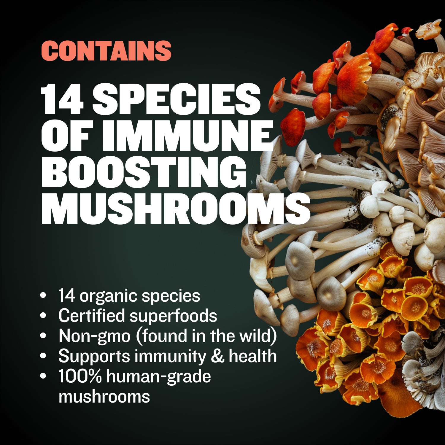 | Organic Mushroom Blend (Reishi, Cordyceps, Chaga, Mesima, Lion's Mane, Turkey Tail, Maitake, Shitake, Blazei, Poria, Agarikon, Suehirotake, Oyster, and True Tinder) | 200 mg |