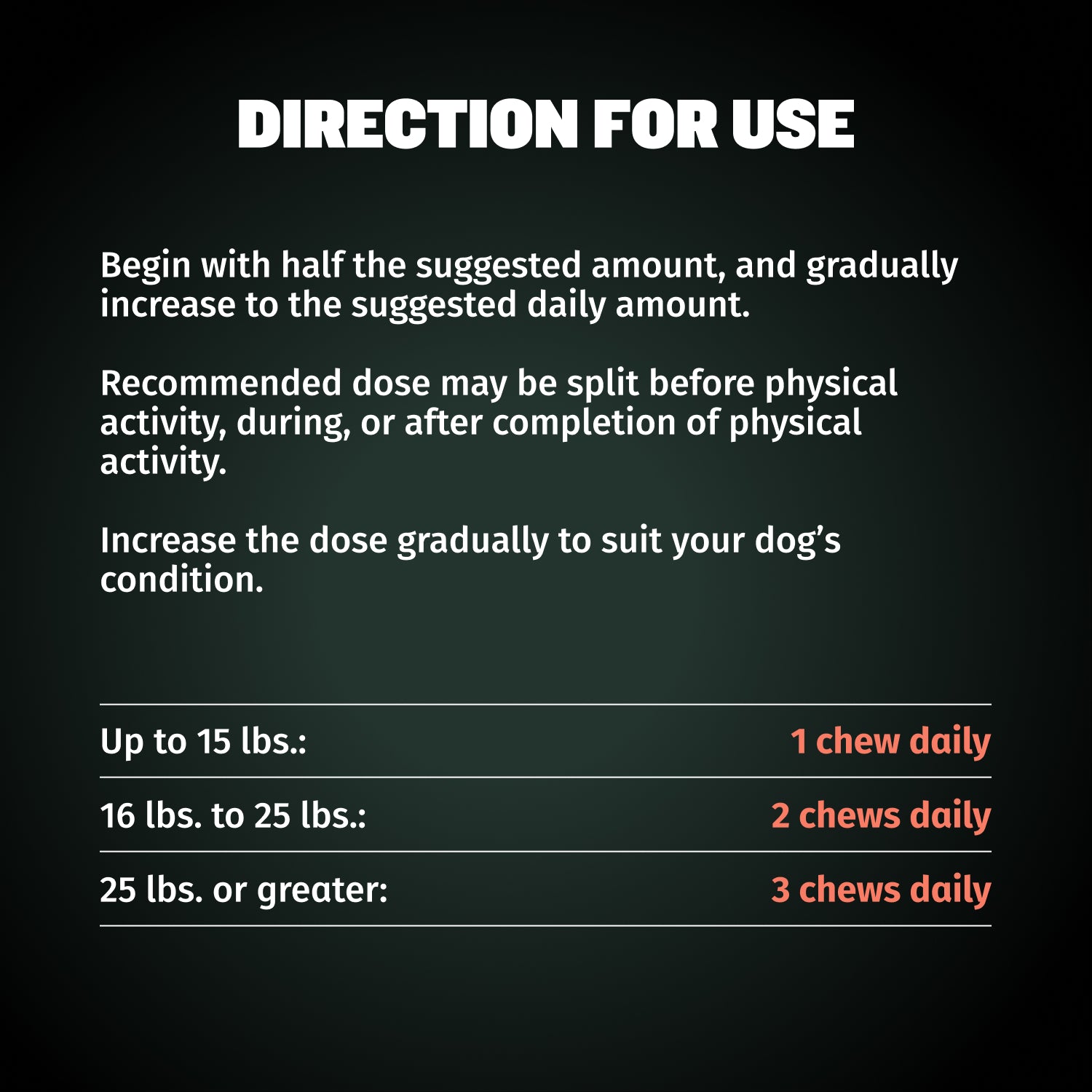 | Dog’s Weight (Lbs) | Chews Daily |