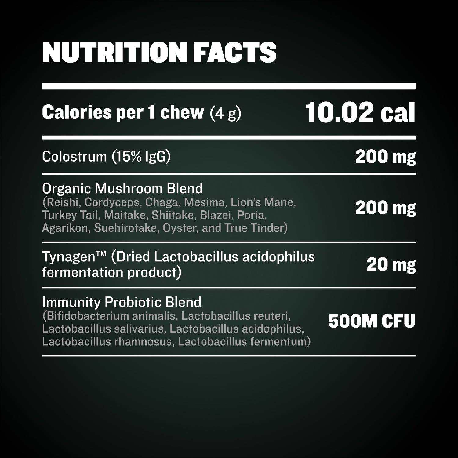 | Active Ingredients Per 1 Chew (4G) | |
