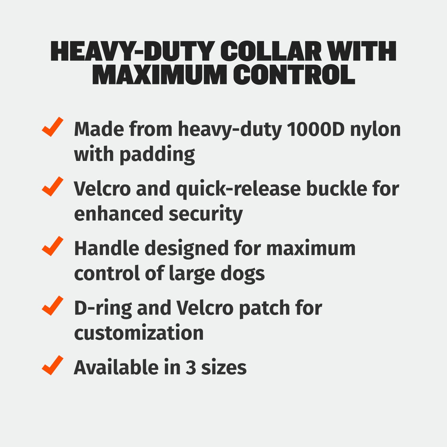 The integrated control handle gives you superior control over your dog, making it ideal for training, crowded environments, or emergency situations. The durable D-Ring provides a reliable leash attachment point, and the Velcro patch area allows for custom accessories, such as Bully Max PVC patches or identification tags.