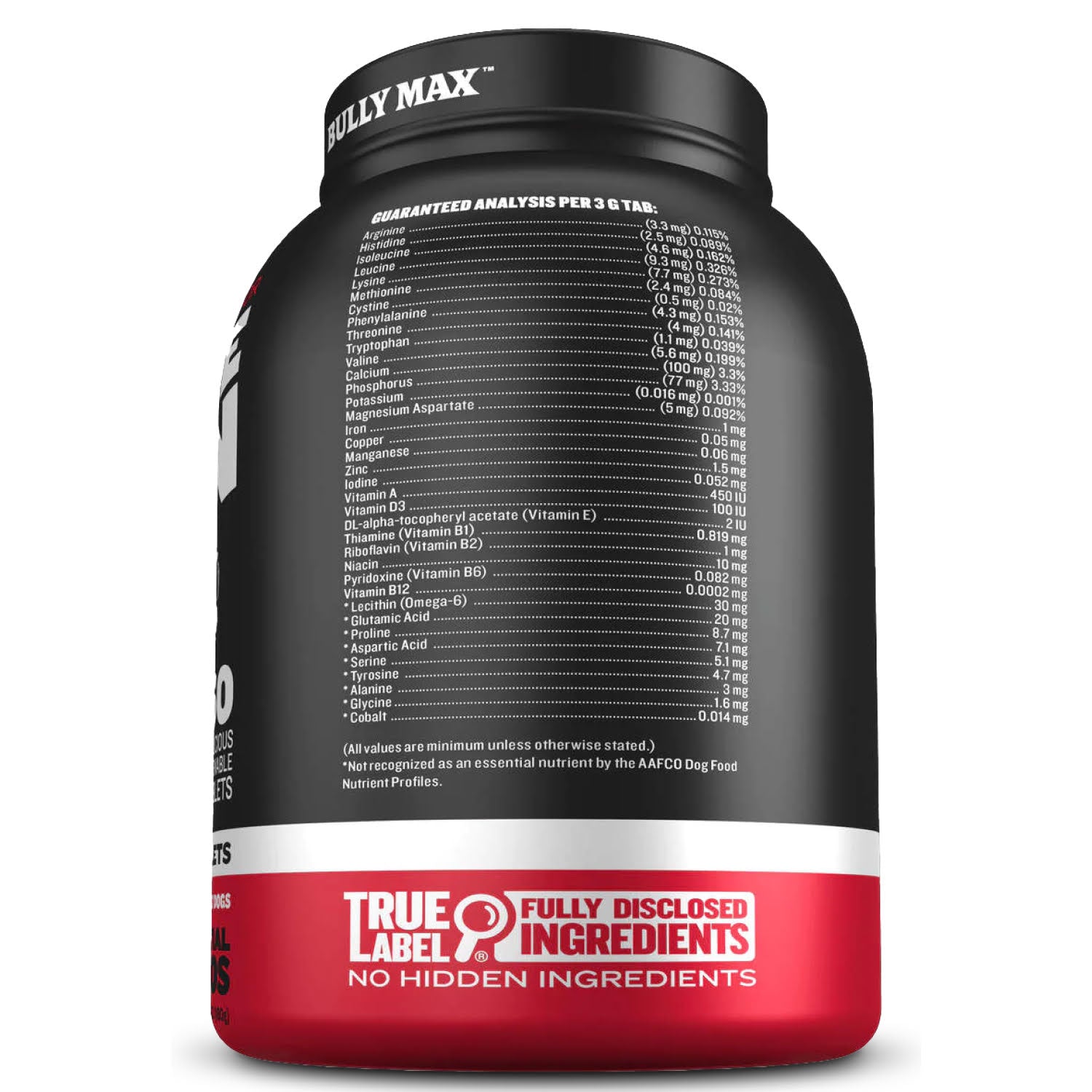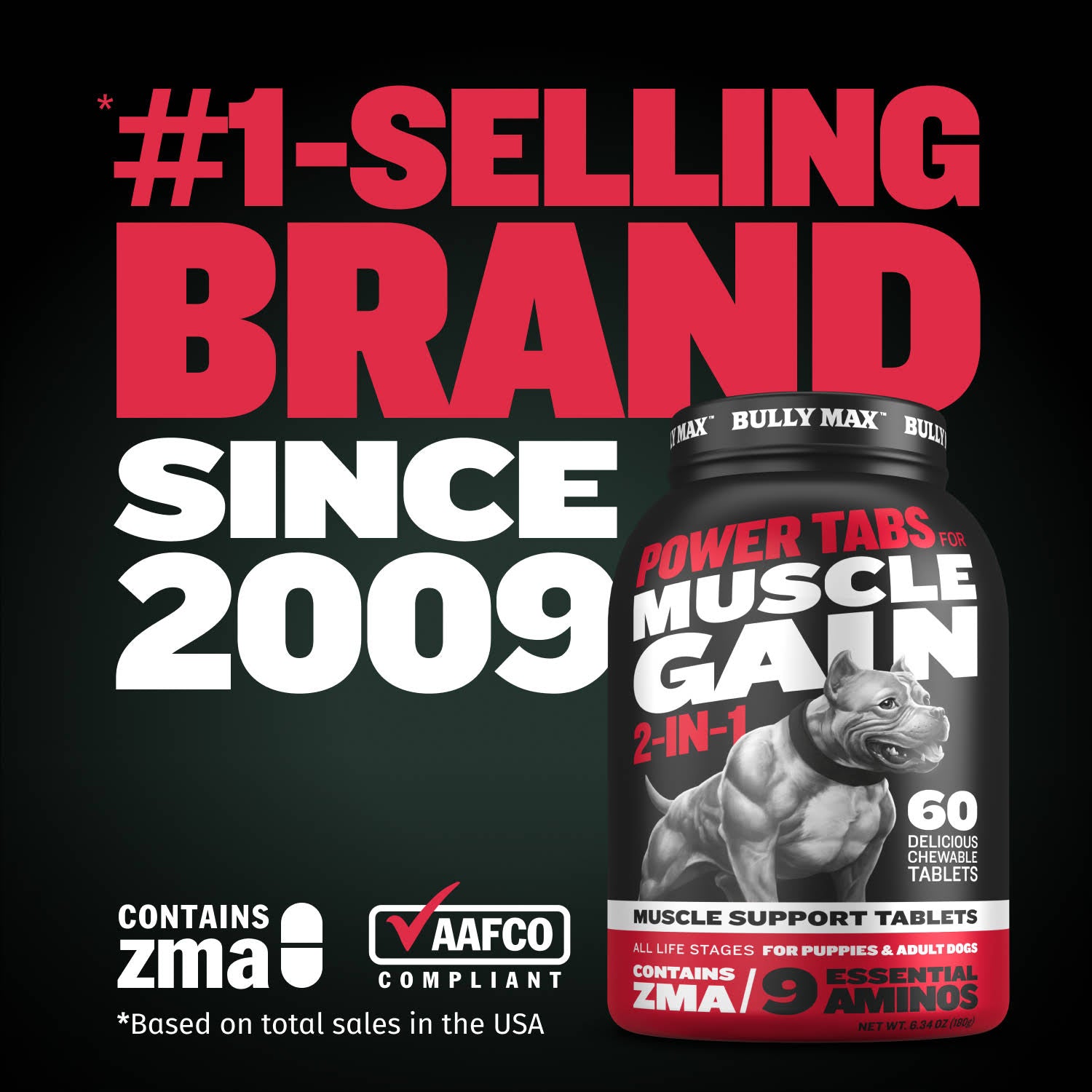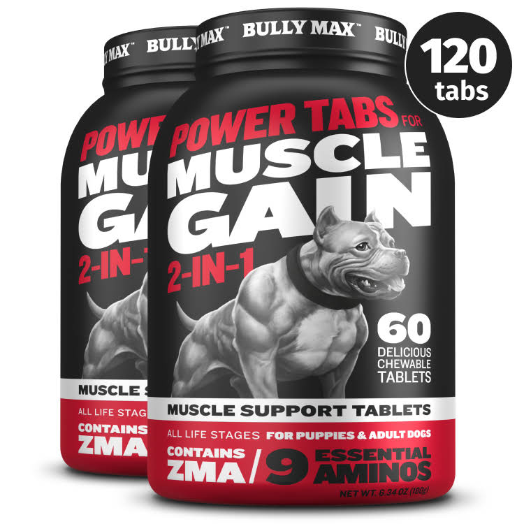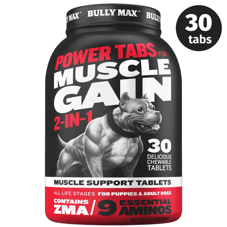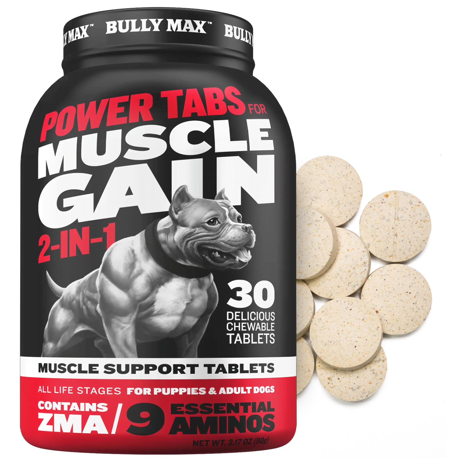 Our Bully Max® Power Tabs for Muscle Gain are a veterinarian-formulated muscle building powerhouse packed with healthy & premium ingredients to bring out the best in your dog. Every tablet promotes muscle integrity and definition, supports normal muscle recovery after strenuous exercise, and supports immune system function.